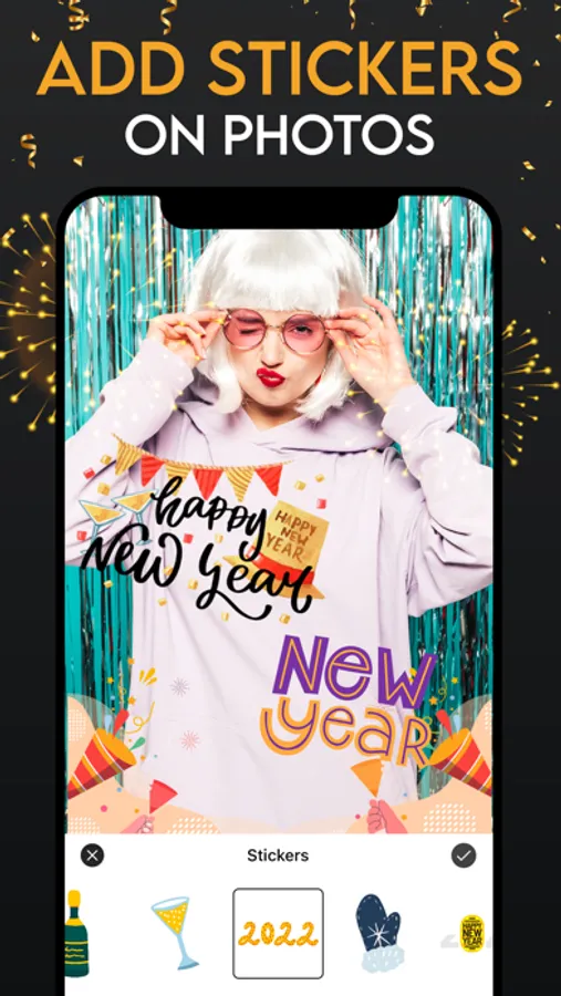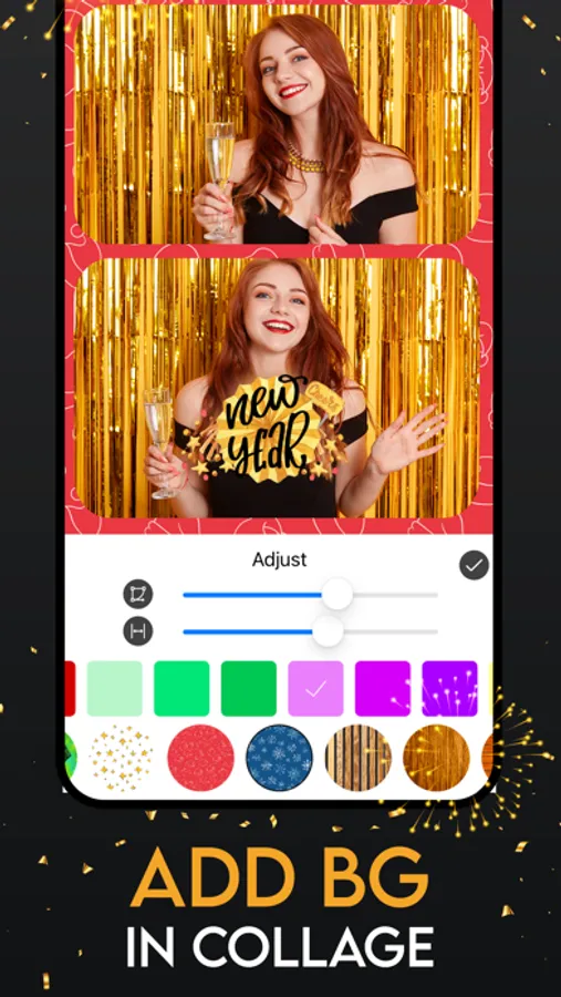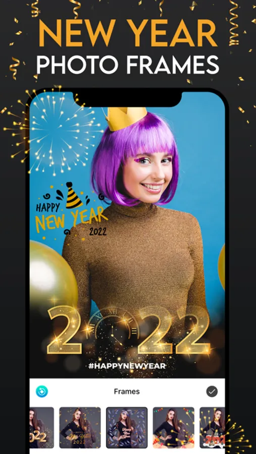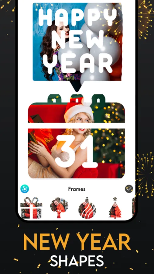 ↦ Select Best New Year Frame, New Year Shape or Collage style.