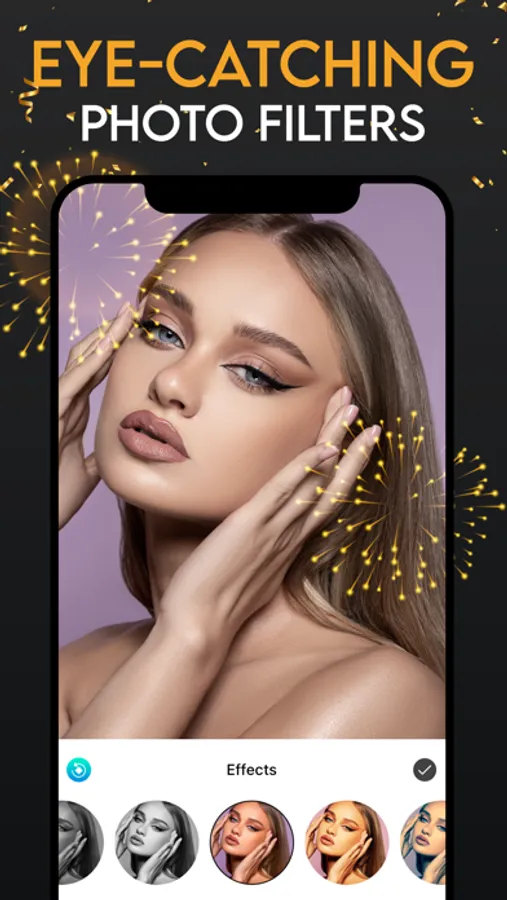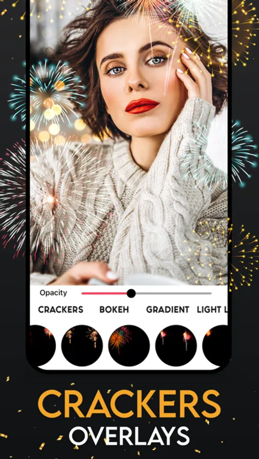 ↦ Apply bakeh, crackers, light leaks over photos in one tap.