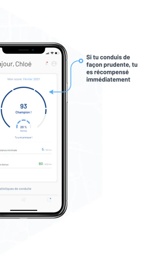 Le conducteur dispose en temps réel d’un suivi de sa conduite et reçoit à chaque trajet, le score qu’il a obtenu et le détail des éléments qui ont influencé son score. Un score global est aussi défini chaque mois.