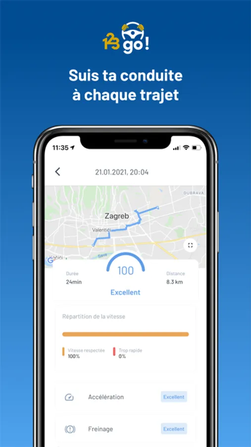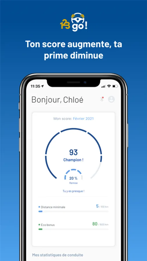 L’application de conduite 123go analyse le comportement au volant de l’utilisateur et établit chaque mois un score de conduite. Le score de conduite obtenu influence la prime d’assurance auto de l’utilisateur. La prime d’assurance évolue donc chaque mois. Le score de conduite est influencé par le respect des limitations de vitesse, les accélérations, les freinages, les virages, l’utilisation du téléphone au volant et la distance parcourue.