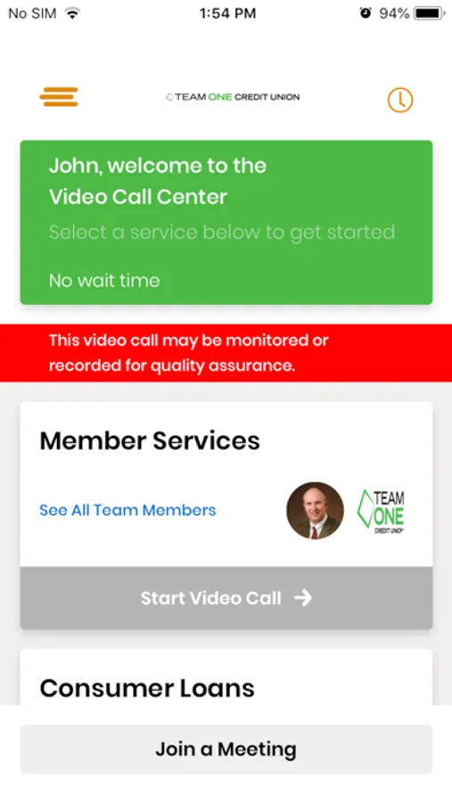 Team One Video Banking Screenshots