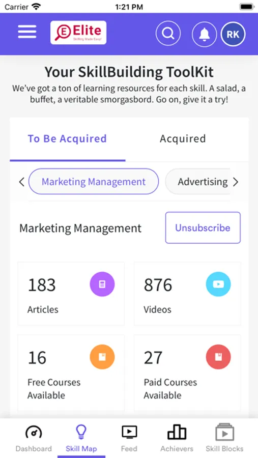 Ever wished for a personal trainer to keep you motivated and on track to achieve your professional goals? Elite brings you your very own personal skilling advisor. He will bully you and cheer you on till you reach your goal. Elite gives you the choice to learn any skill through videos, podcasts, webinars, articles and of course conventional courses.
