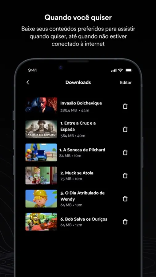 • Faça download de seus vídeos e filmes preferidos e assista quando quiser, mesmo sem estar conectado à internet*.