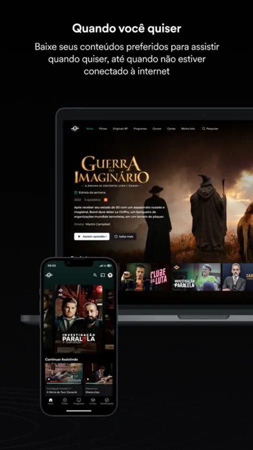 Instale o aplicativo e aproveite agora mesmo a melhor seleção de filmes, séries e documentários no seu celular, Smart TV ou computador.