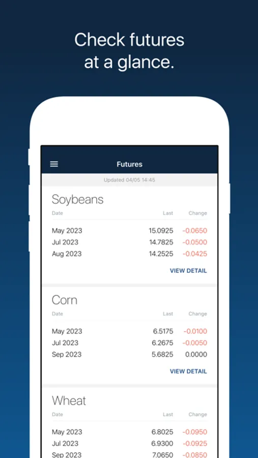 Futures: See Grains, Feed, Livestock, and Ethanol futures listed in order of your preference