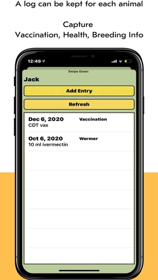 With an easy and intuitive interface, the user simply enters each animal by either name or tag number. From there, a detailed record can be made for each animal with a photo, breed, sex, status, and many other attributes.