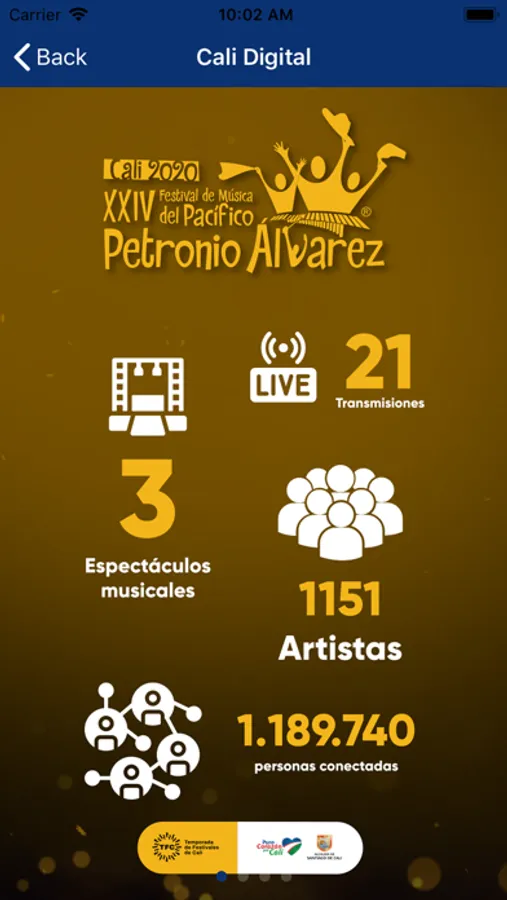 Entregar detalles sobre el show lumínico que se llevará a cabo en Cali durante el año 2020 en función del alumbrado navideño móvil. Una apuesta tecnológica de tipo pedagógico que cuenta una historia de reflexión frente a la pandemia del Covid-19, en la cual se fundamenta el juego de luces que recorrerá la ciudad. En virtud de lo anterior la aplicación permitirá entregar información oportuna respecto a los recorridos y formas de interacción que los ciudadanos podrán tener con el montaje.