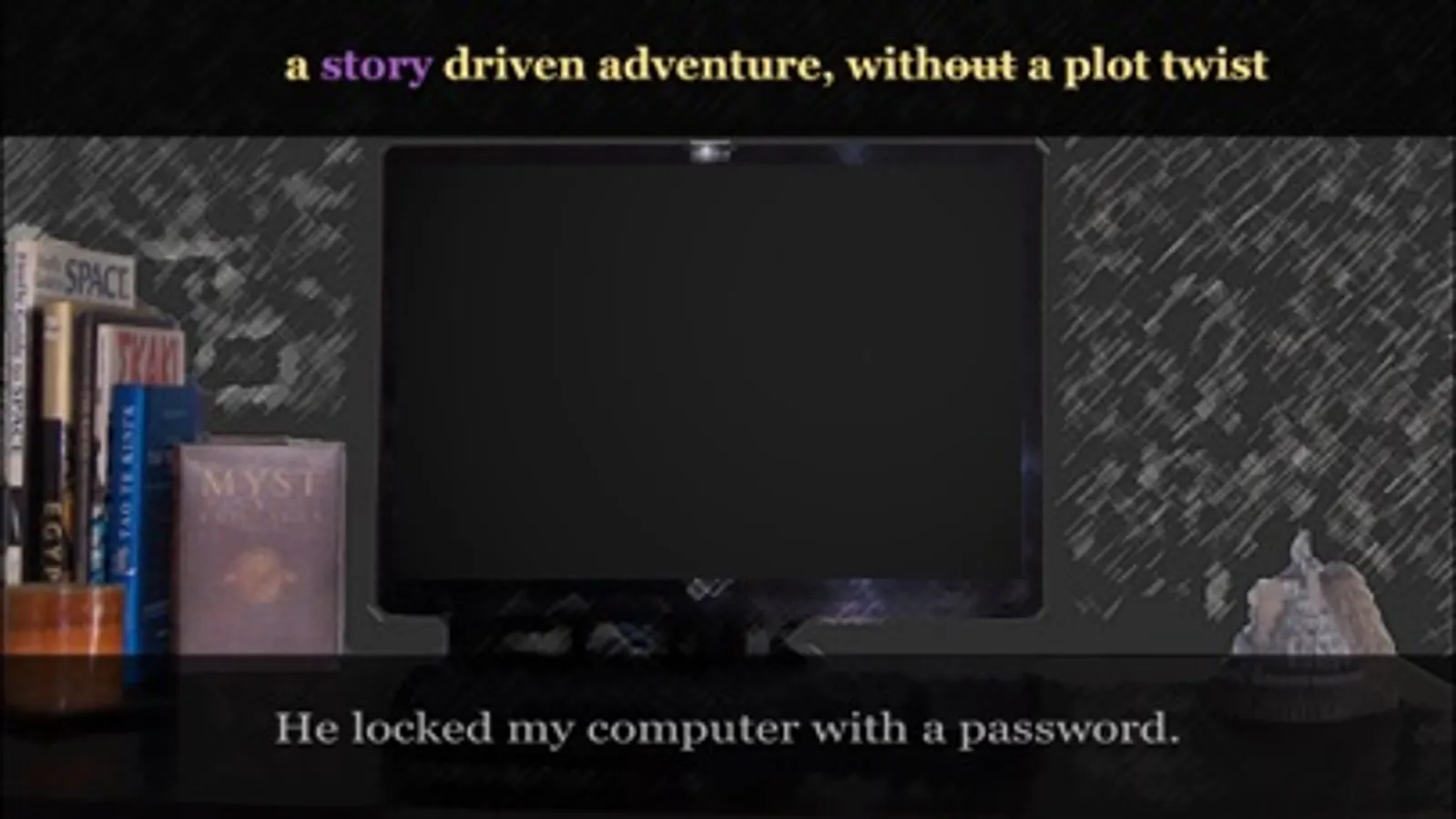 You wake up in the middle of the night and you find yourself in your room, but everything feels out of place. It seems like your brother locked your computer, messed with your stuff and left clues all around to help you decrypt the password. But why would he do that? And why does your room seems so weird?