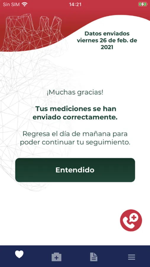Con un formato simple y sencillo, la aplicación permite a los pacientes registrar sus mediciones diarias las cuales son enviadas al portal médico de la aplicación para que su médico tratante pueda monitorear en tiempo real los datos enviados por el paciente. Los datos se presentan al médico en forma de tablas y gráficos para ver las tendencias del comportamiento de los diferentes parámetros del paciente día a día y que le permitan la detección oportuna de alguna descompensación de la condicion de insuficiencia cardiaca del paciente que determinen una visita al médico de manera presencial (consultorio u hospital).