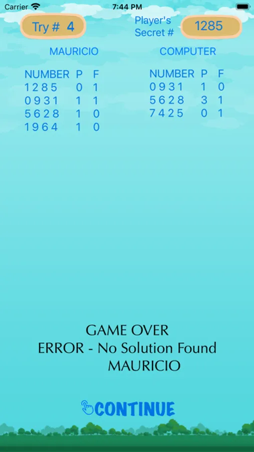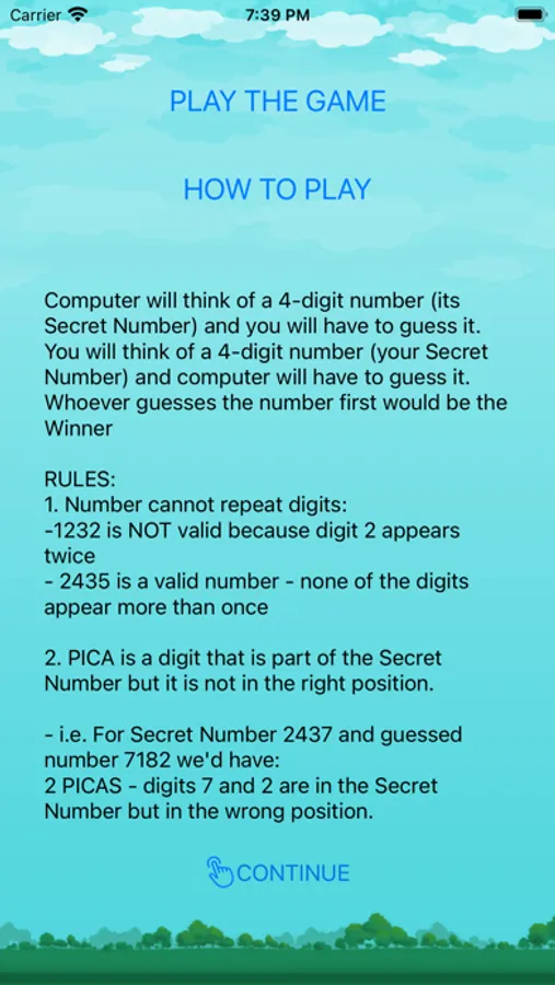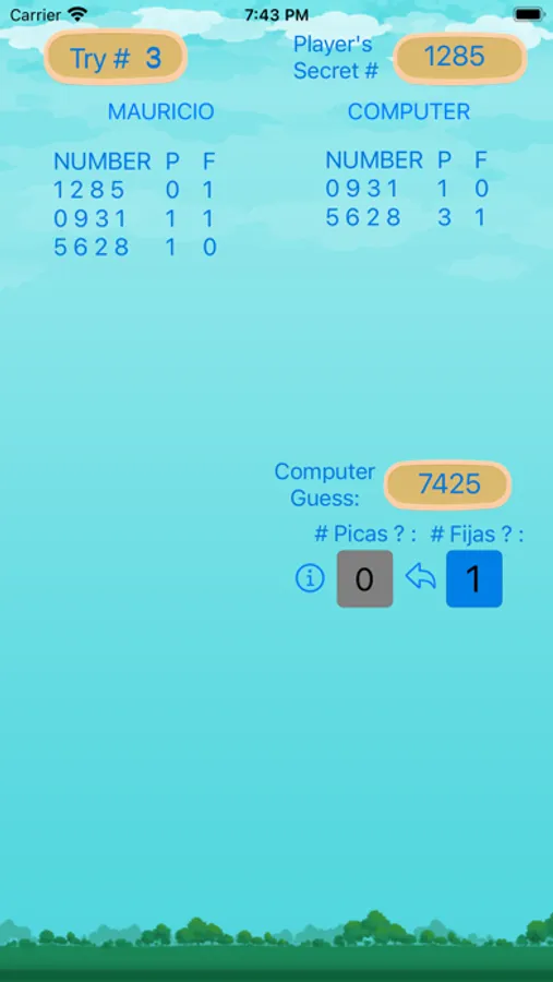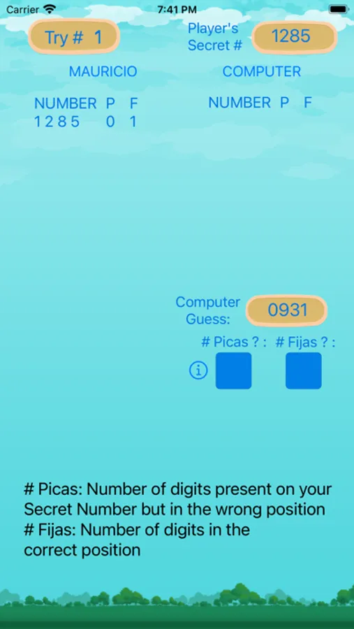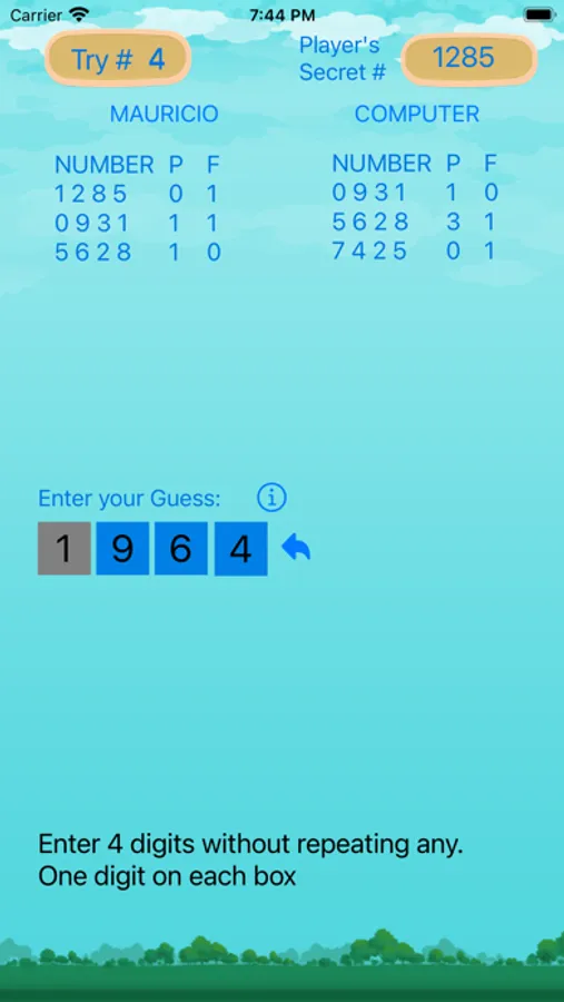 In this game you think of a 4-digit number which the computer will try to discover.