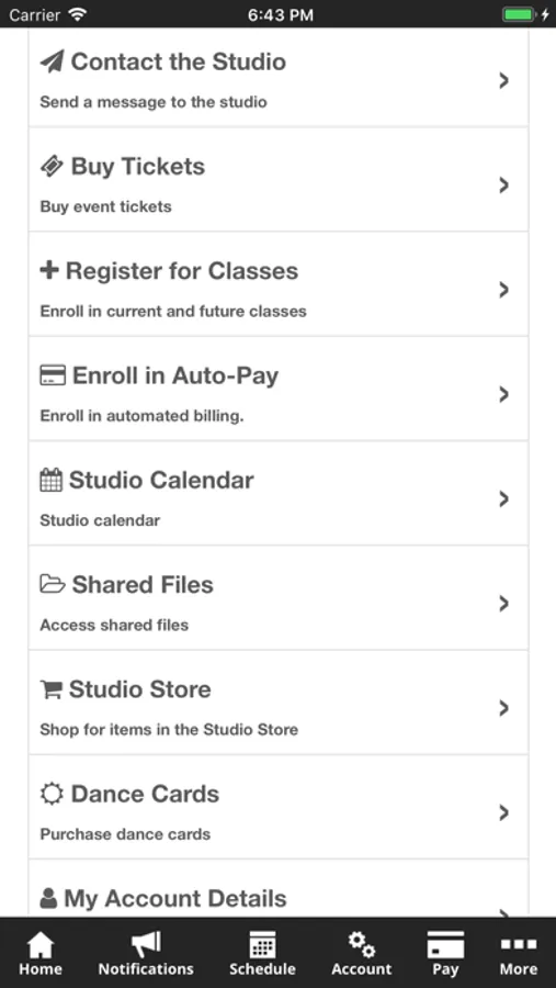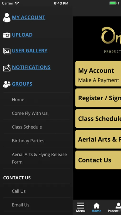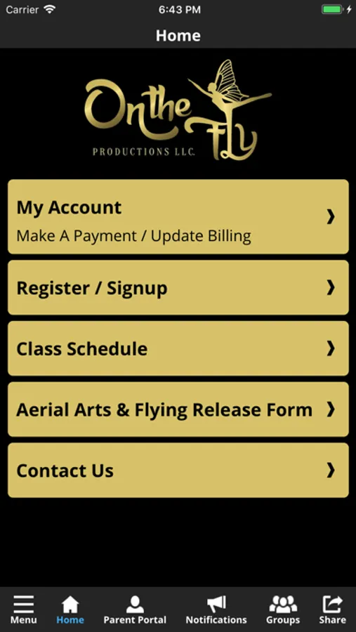 On the FLY Studio app allows you to manage your account with ease, register for classes, parties, and special events. You'll also receive important notification about class changes, closings, registration openings, special announcements, and upcoming events.