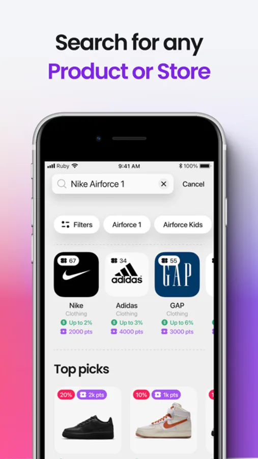 Ruby's powerful search puts any product or store you want right at your finger tips.