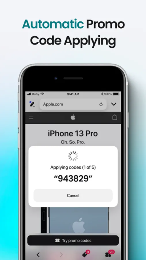 While checking out, Ruby automatically tries various available promo codes for that item to help you save the most on your purchase.