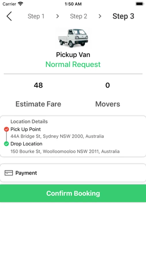 This app is developed to help users book drivers with vehicles like Ute, Van or truck to pickup their medium to heavy luggage from one place i.e. warehouse, home or store to another place. The user can set their pick up and drop off locations, desired vehicle type and product description in the app. Users can track driver's location and also can request to change drop location and time.