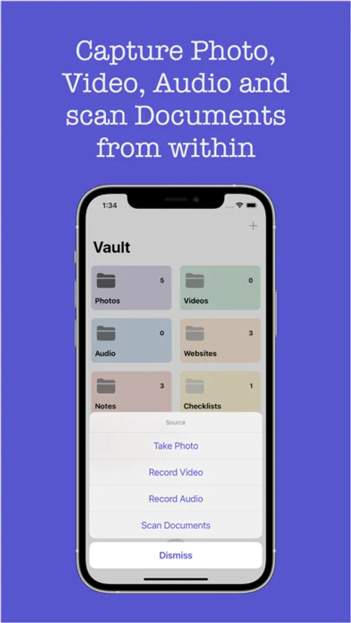Hide all your private photos, videos, notes, audio, documents, checklists and websites behind a calculator
