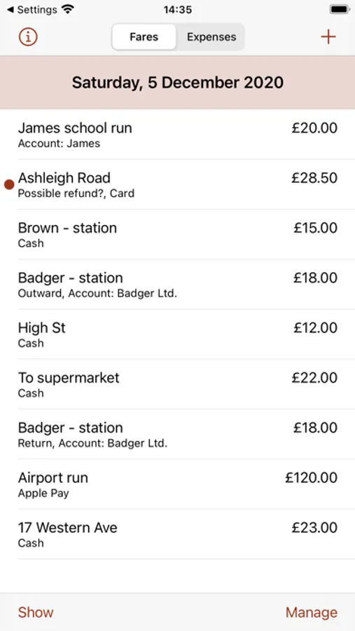 The app provides an easy to use system for tracking, organising, and exporting your fares & expenses. Enter fares & expenses as you go or from your worksheet, check your daily totals for cash, card, account or any other payment methods, and export details or totals for use in spreadsheets, word processors or other apps.