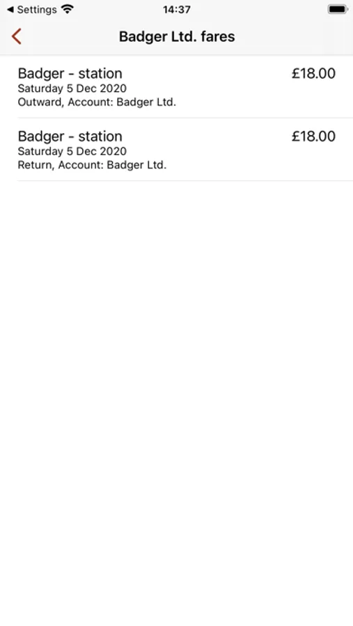 Accounts can be set up in advance or created on the fly. All the fares for an account can be listed separately.