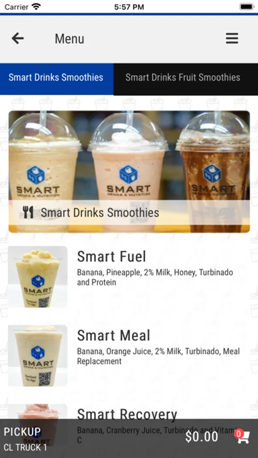 Use our convenient app for ordering your favorite drink from Smart Drinks right from your phone! Check our current location and menu items for the day. Earn Loyalty Points with each purchase good for discounts! You'll also receive coupon codes periodically that can be used at checkout.