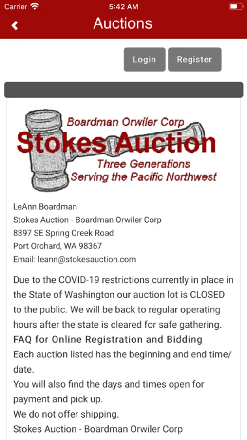 Whether you have a small estate or multi-million dollar auction, our staff is prepared to serve you. Auctions cand at your site or at our convenient auction facilities located just off Hwy 16 between Port Orchard and Gig Harbor in Washington State. Stokes Auction pledges to provide knowledge, experience and expertise to all their customers.