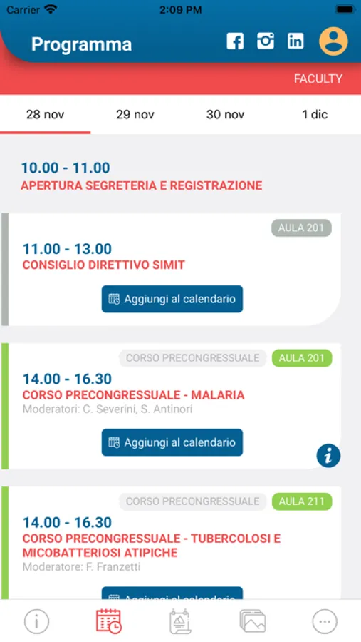 • Programma del congresso: L’Applicazione consente di selezionare le sessioni di interesse per aggiungerle alla propria agenda personale e al proprio calendario di sistema