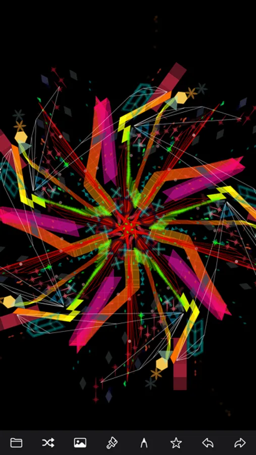 You start painting with your fingers or stylus, and it may seem simple at first, but when you start mixing effects, symmetry, rotations, color palettes, and brushes, is when the most awesome drawings start coming to life! The best drawings come out from not having an idea in mind, but just playful tinkering with all the available settings!