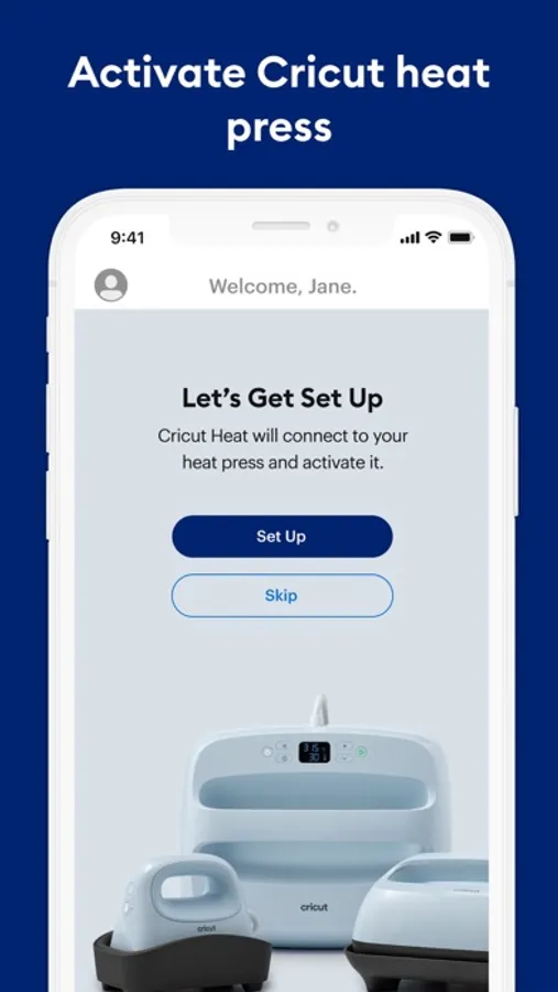 1. Download & open app to set up Cricut EasyPress 3 or Cricut Hat Press