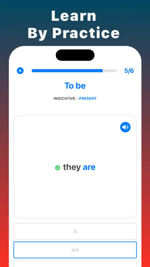 Choose between a male or female voice to listen to the conjugations, so you can hear the pronunciation from both perspectives. This is especially useful if you want to be exposed to different accents and intonations.