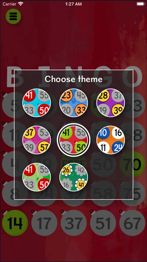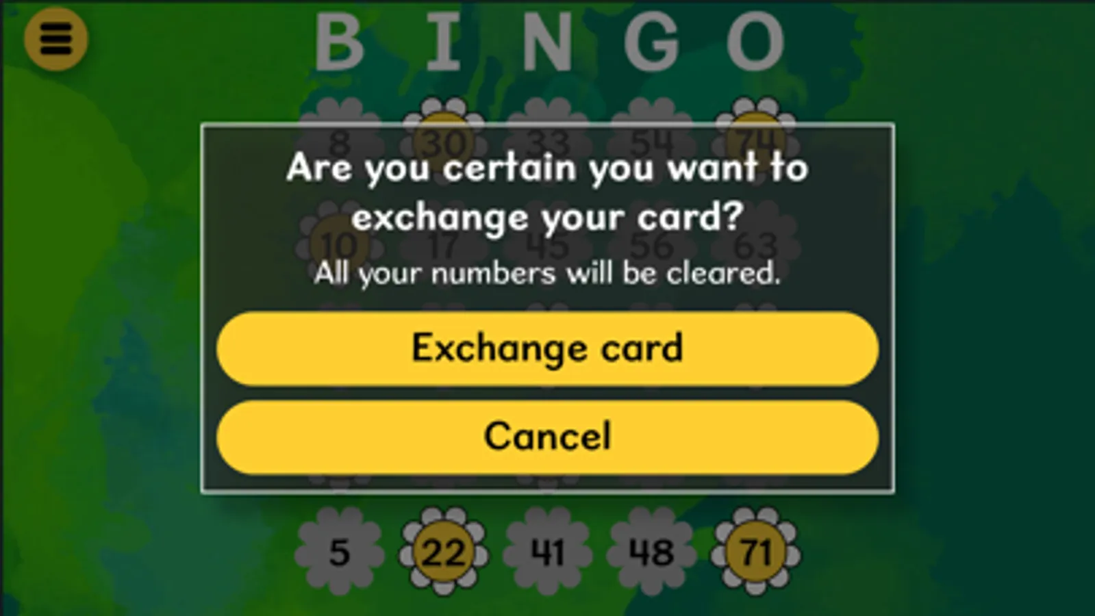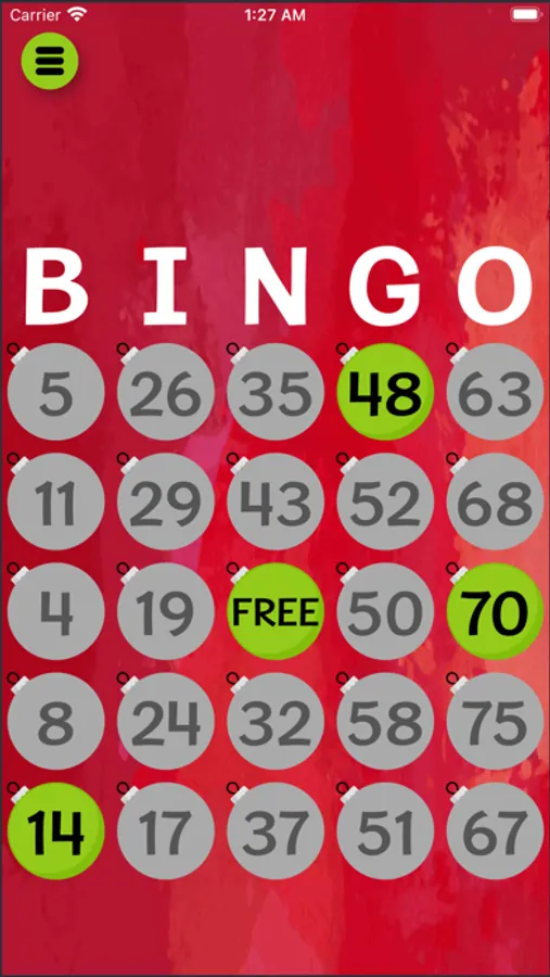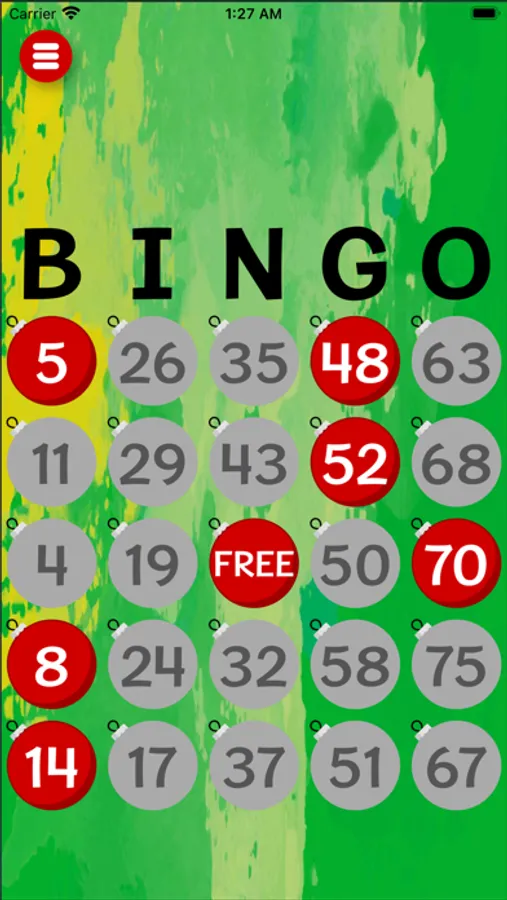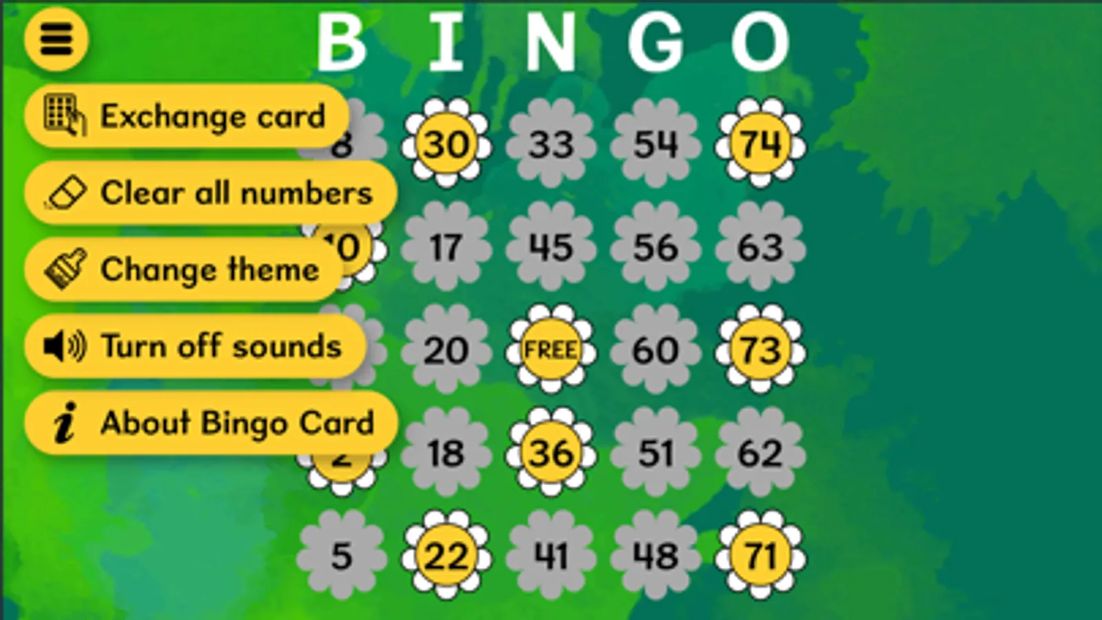 Here's a BINGO card for your phone or tablet. Simple controls (just tap the number), several themes to choose. Use this app to play remote BINGO games with friends online. Or for in-person games, use this app to save a tree.