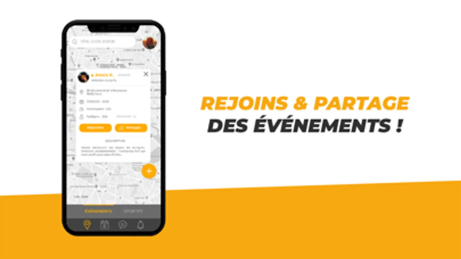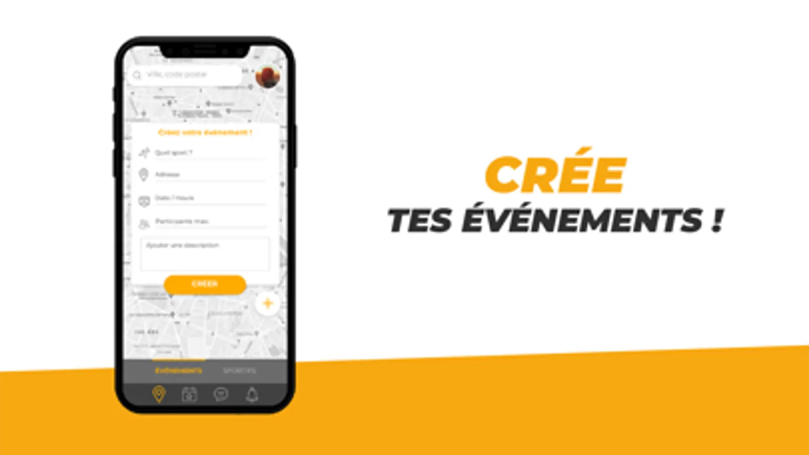 - La création d'un événement est très simple et GRATUITE: Quel sport, le lieu, la date et l'heure, le nombre de participants maximum, une brève description et c'est terminé! Ton événement apparaît sur notre carte et les autres peuvent rejoindre ton événement.