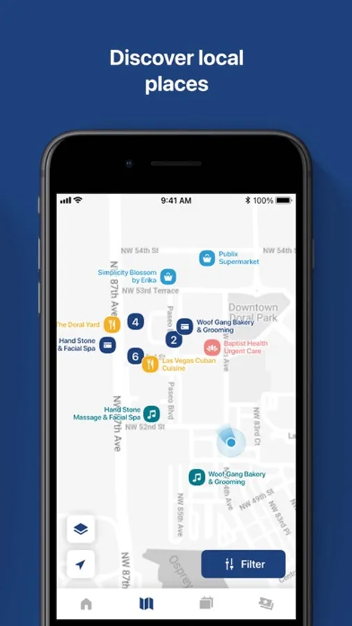 The free Downtown Doral App features information for visitors to enjoy Miami’s premier town center to the fullest including: