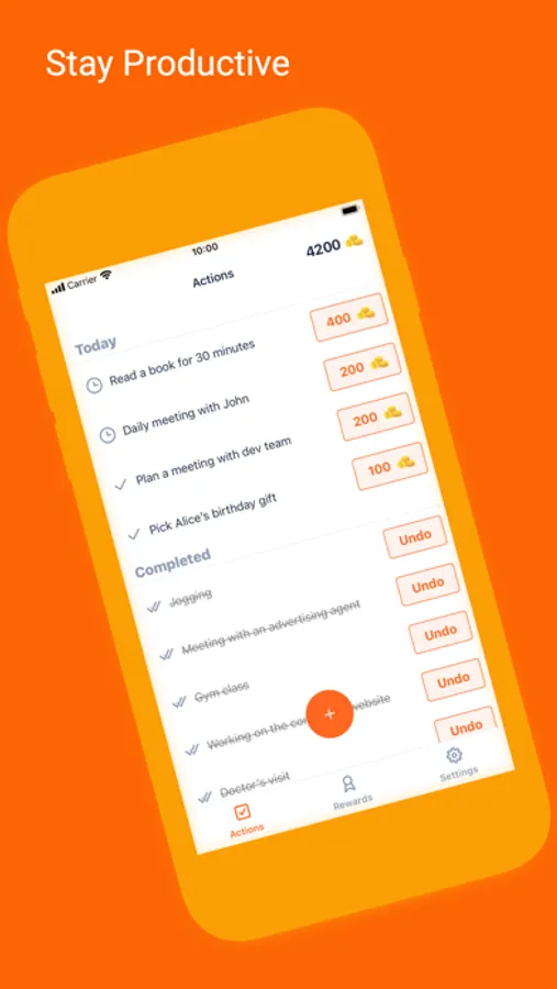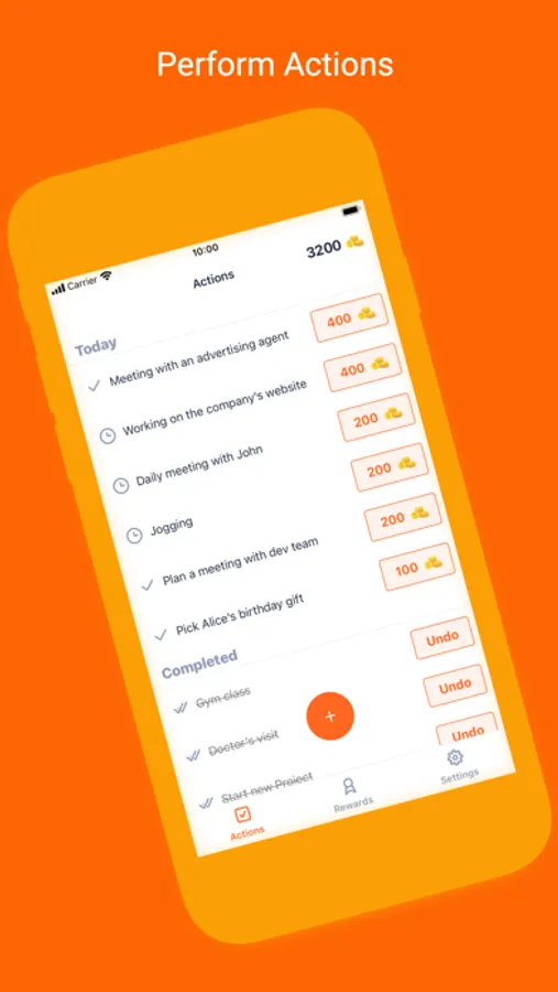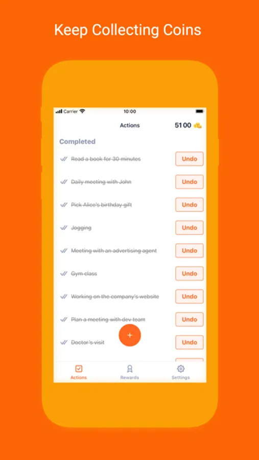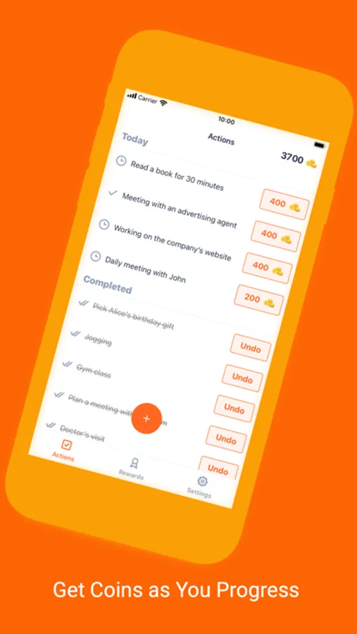 - Receive coins reward for each action completed