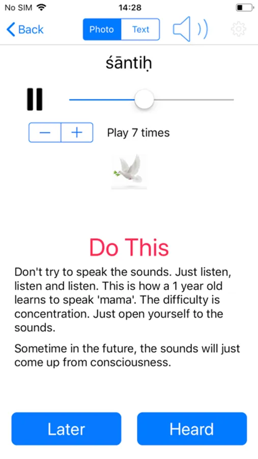Pronounce and recite Yoga terms and chants in Sanskrit: asanas, mantras, pranayamas, etc. Also pronunciation of 87 Yoga asana names. This app uses memory techniques used by children to learn speech from mummy, not like adults in a language learning class. This approach is radically different from any other language learning methodology.