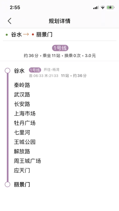 选择出发站点,到达站点,即可获得换乘方案---包含:路线,时间,票价,距离等信息