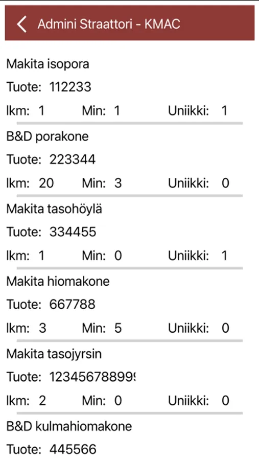 Varastonhallinta sekä tuoteseuranta ohjelmisto. Varaston sisäisen hallinnan lisäksi tuotteita voi ottaa itselle, tarkistaa mitä on ottanut sekä siirtää niitä toiselle, pilvipalveluna. Jatkuva varastotason seuranta sekä hallinta siitä kenellä tuote tällä hetkellä on rekisteröitynä. Tuotteet voi myös rekisteröidä, eli siirtää, toisen hallintaan.