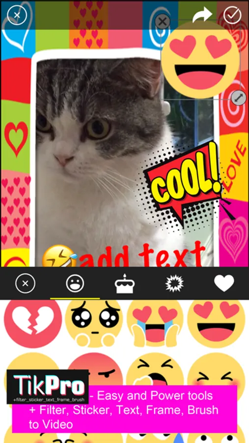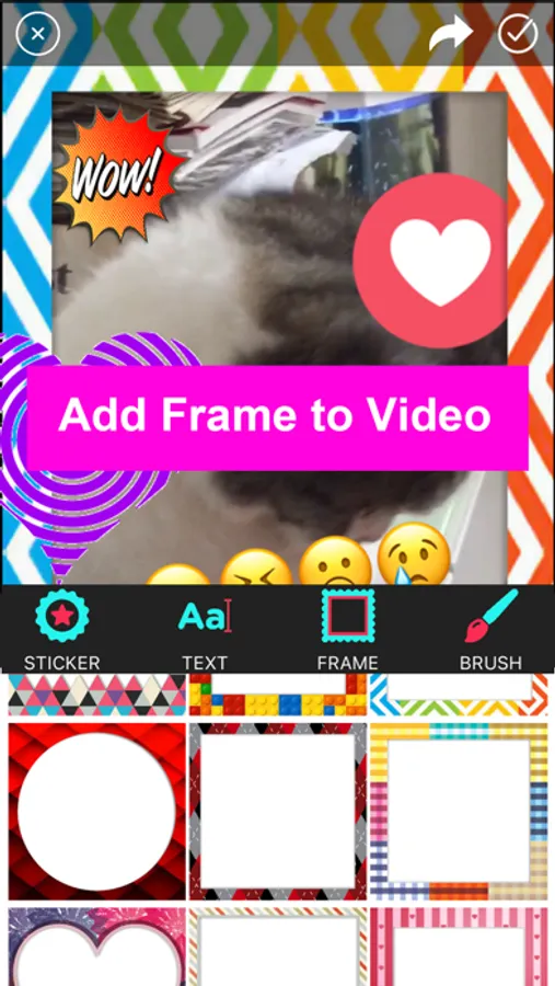 + Filter, Sticker, Text, Frame, Brush to your Video.
