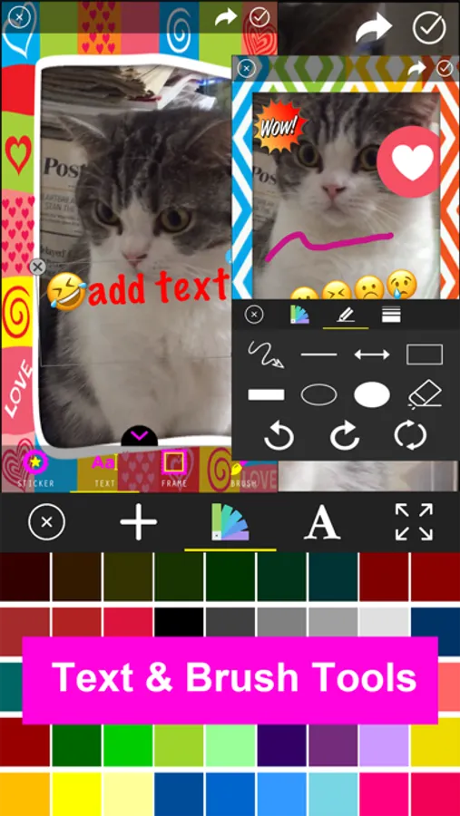 -Brush: Color, Straight line, Arrow, Oval, Rectangle, undo, etc
