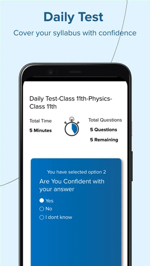Our Vision is to provide an accurate confidence-based assessment in the minimum stipulated time of 5 minutes to track and improve students’ performance with the highly selective and personalised tests from our exhaustive question bank crafted by the experts.
