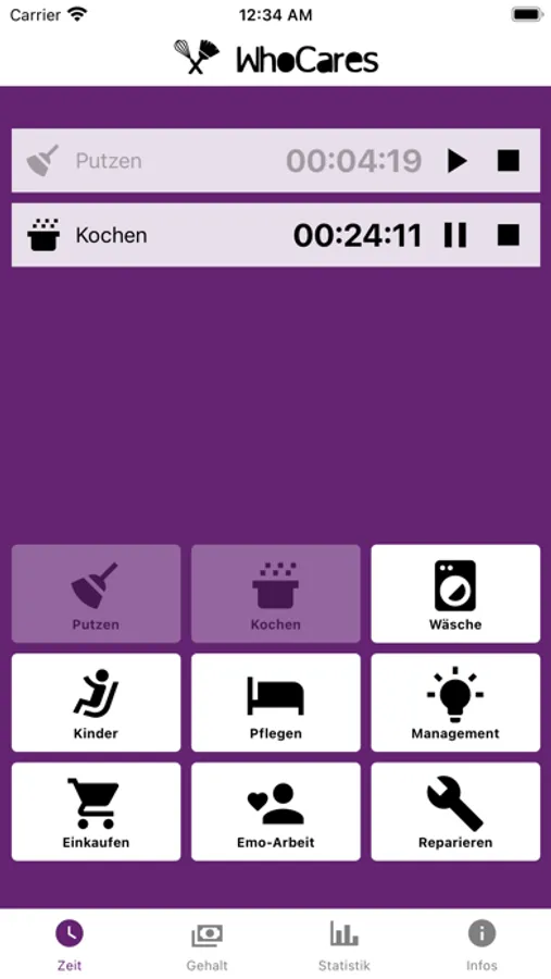 Wie viel ist meine unbezahlte Care-Arbeit wert? Mit der App kannst du deine tägliche Sorge- und Pflegearbeit zeitlich erfassen und in Lohn umrechnen.