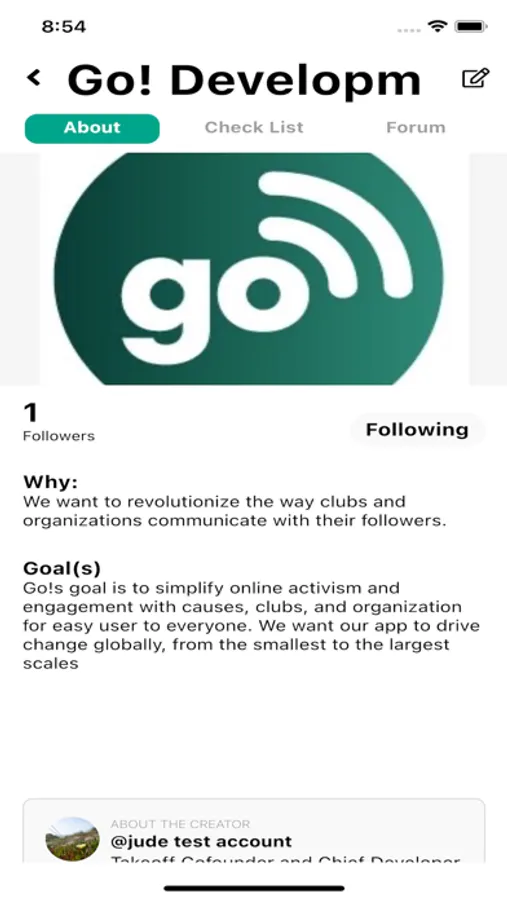 The Go! app is the social media platform for anyone who wants to create, follow, support, or participate in any social cause, movement or club.