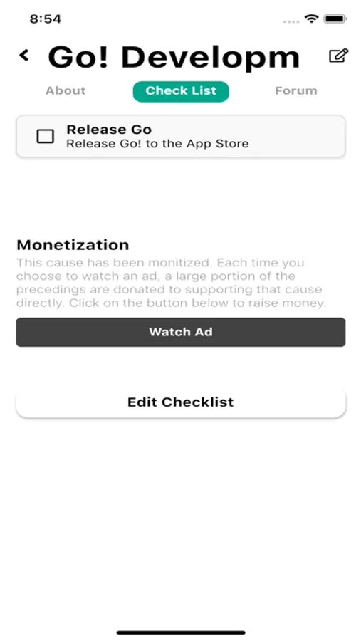 At Go! we believe that our participants should be in control of their data, Go! aims to build a platform where each participant can choose how they want to use their collected data gathered during the time they spend on the app. The more time they spend on Go!, the more positive impact they will make. Our Changemakers will be able to donate the value generated from their data and time spent on Go! to the cause, movement, or club of their choice. They will also have the choice to monetize their cause which will include sponsored posts on the forum and checklist forum to generate revenue for them, regardless of whether or not they choose to monetize their data. In a later version, our participants will choose if they want to exchange their data for goods or services offered on the platform.