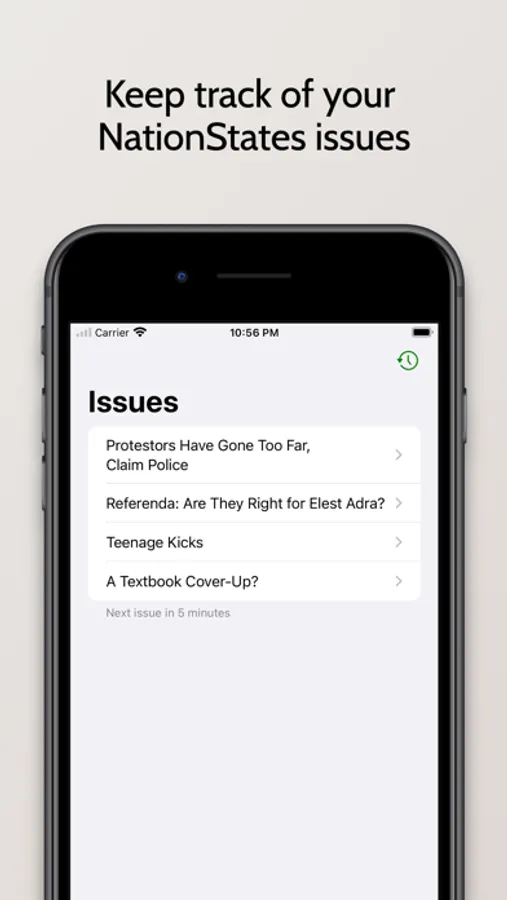 Issues for NationStates helps you to keep track of your nation's issues on the go!