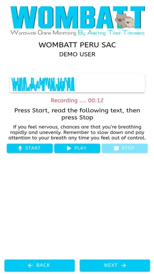 After the first process (before the start of each work shift), the user should enter twice more (Example: after lunch and at the end of the shift) but in these cases you should only record the voice, which will be analyzed to obtain the current state of fatigue of the user. Again, if the result is ORANGE or RED, an email will be received with the corresponding information. Same as the previous process, in case of a RED result on the voice, an SMS message can be sent to the supervisors and contacts.