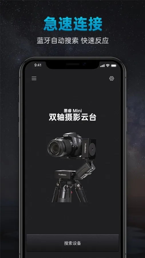 此应用是用于蓝牙控制PicoMotion®品墨系列智能便携摄影设备,包括墨思MicroSlider便携摄影轨道、墨睿MicroRotator便携旋转摄影云台、思普SliderPlus摄影轨道以及后续产品,可根据选购设备,组合实现单轴、多轴的动态视频拍摄、延时摄影、全景拍摄、矩阵拍摄、定格动画、关键帧编辑等功能。
