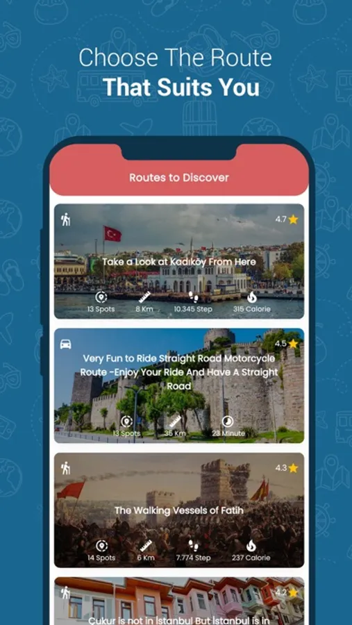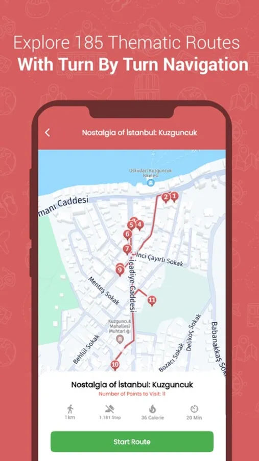 In this trip planner app, carefully prepared car, bike, and walking routes are waiting for you. You can start your route with digital guide or explore the route by listening to audio visuals. You can also review a route, comment on a route or read comments of other travelers. One hundred eighty-five different routes are at your fingertips!