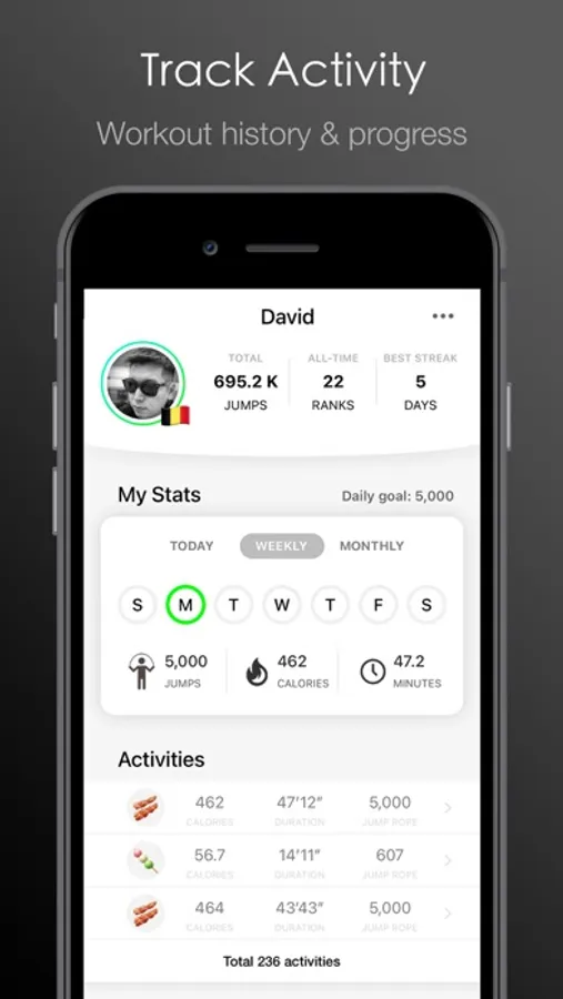 Jumpr also integrates with HealthKit (Apple Health), so you can sync calories burned and exercise data to Apple Health.