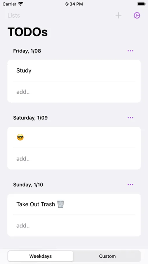 Daily TODOs with lists for each day of the week (and custom lists, recurring TODOs, show/hide completed). If you are filling up legal pads or notebooks everyday, writing and crossing out over and over, this App is for you.