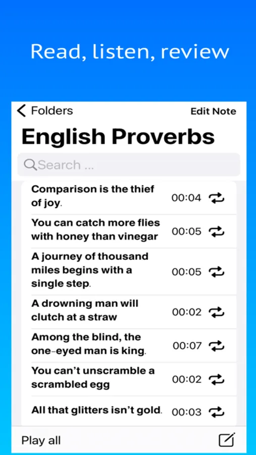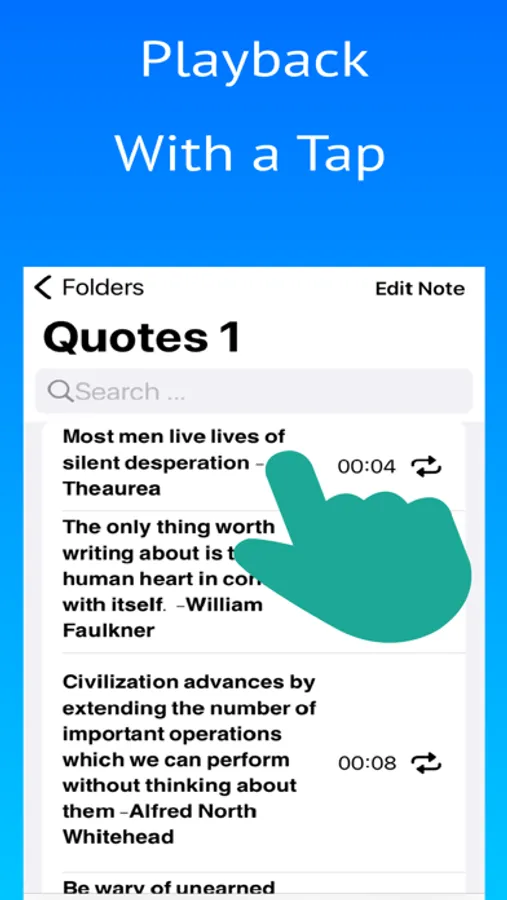 • Loop-play an entire folder of audio notes to listen again and again so you can remember more easily.