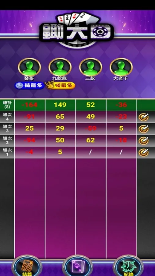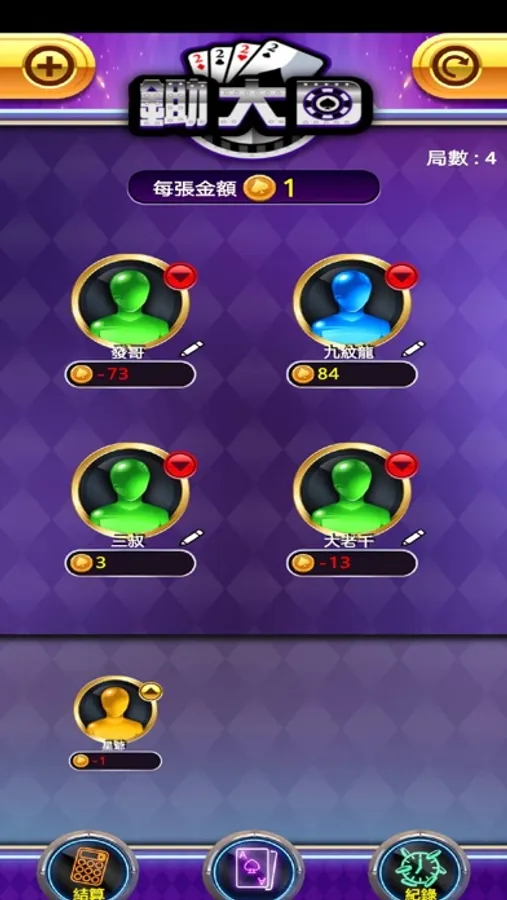 這是鋤大D(鋤大地)計分器,可以容許玩家離桌換人。亦增設道具模式,玩家可按預設方法觸發道具抽獎,亦可自行定義觸發條件,以達最佳效果。