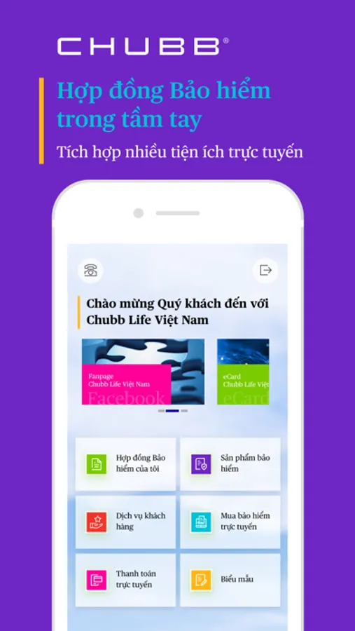 Chubb eConnect is an official digital application for Chubb Life Vietnam’s customers. Chubb eConnect is integrated online utilities that help you connect us rapidly and conveniently with many features: