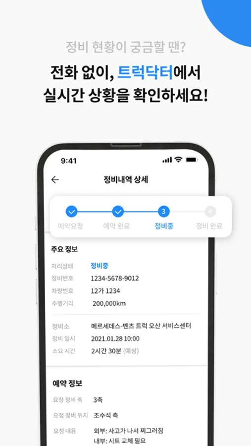 전화로 확인 할 수 없었던 정비. 이제 트럭닥터에게 맡겨보세요.